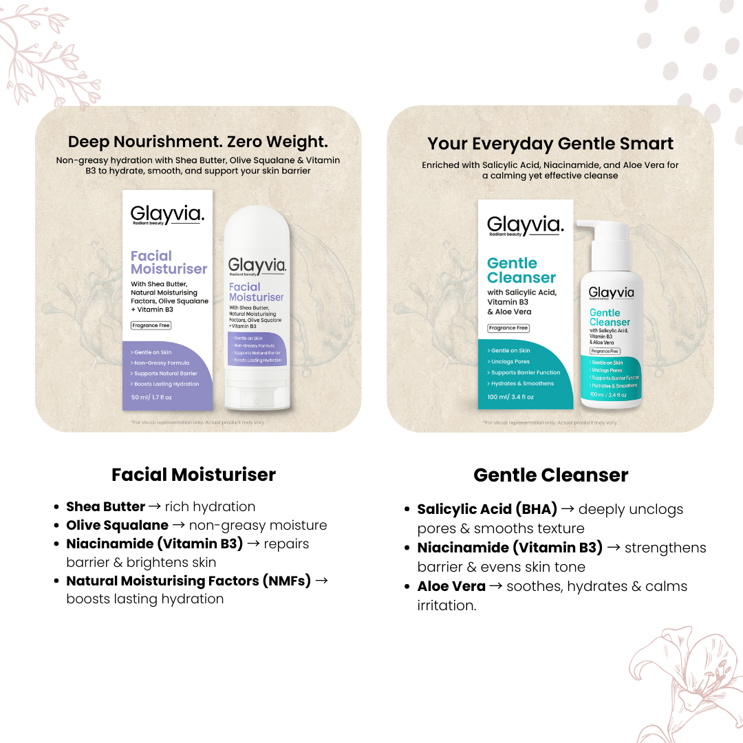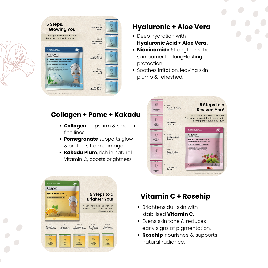 From understanding the nuances of different skin types to addressing unique challenges, we’ve built Glayvia to meet your skin’s needs with care and precision.