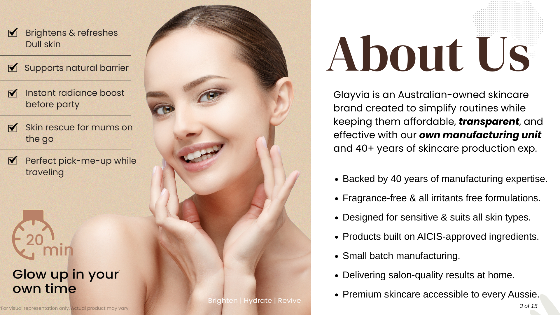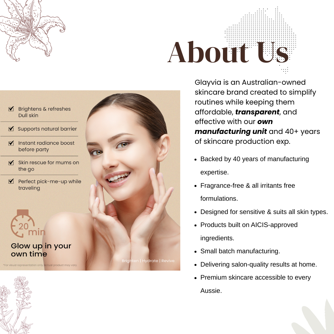 At Glayvia, skincare and beauty isn’t just our business, it’s our legacy. For over four decades, our journey has been rooted in a deep passion for human skin and a commitment to crafting exceptional skincare solutions.
